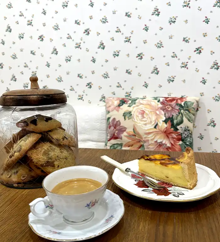 Au premier étage, j'ai aménagé des coins cosy spécialement pour vous offrir un moment de détente totale. Chaque recoin est conçu pour que vous puissiez déguster mes délices pâtissiers préparés sous vos yeux. Les meubles que j’ai chiné créent une ambiance propice à la détente et à la gourmandise.